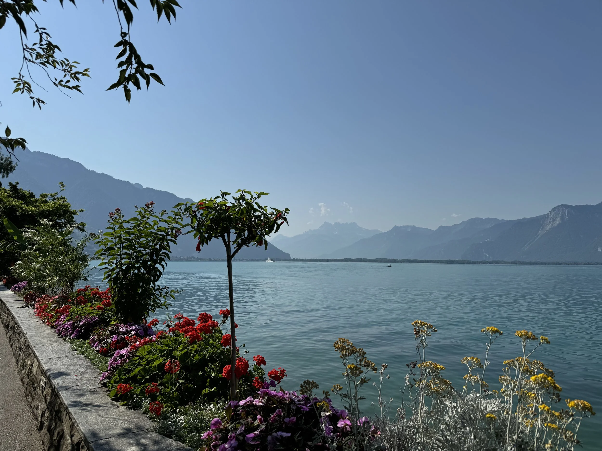 Train trip to Montreux — walking the lakeside promenade nicknamed the “Swiss Riviera” and having courtside refreshments at the Montreux Racquet Club — this city was lovely and we would have loved to spend more time here