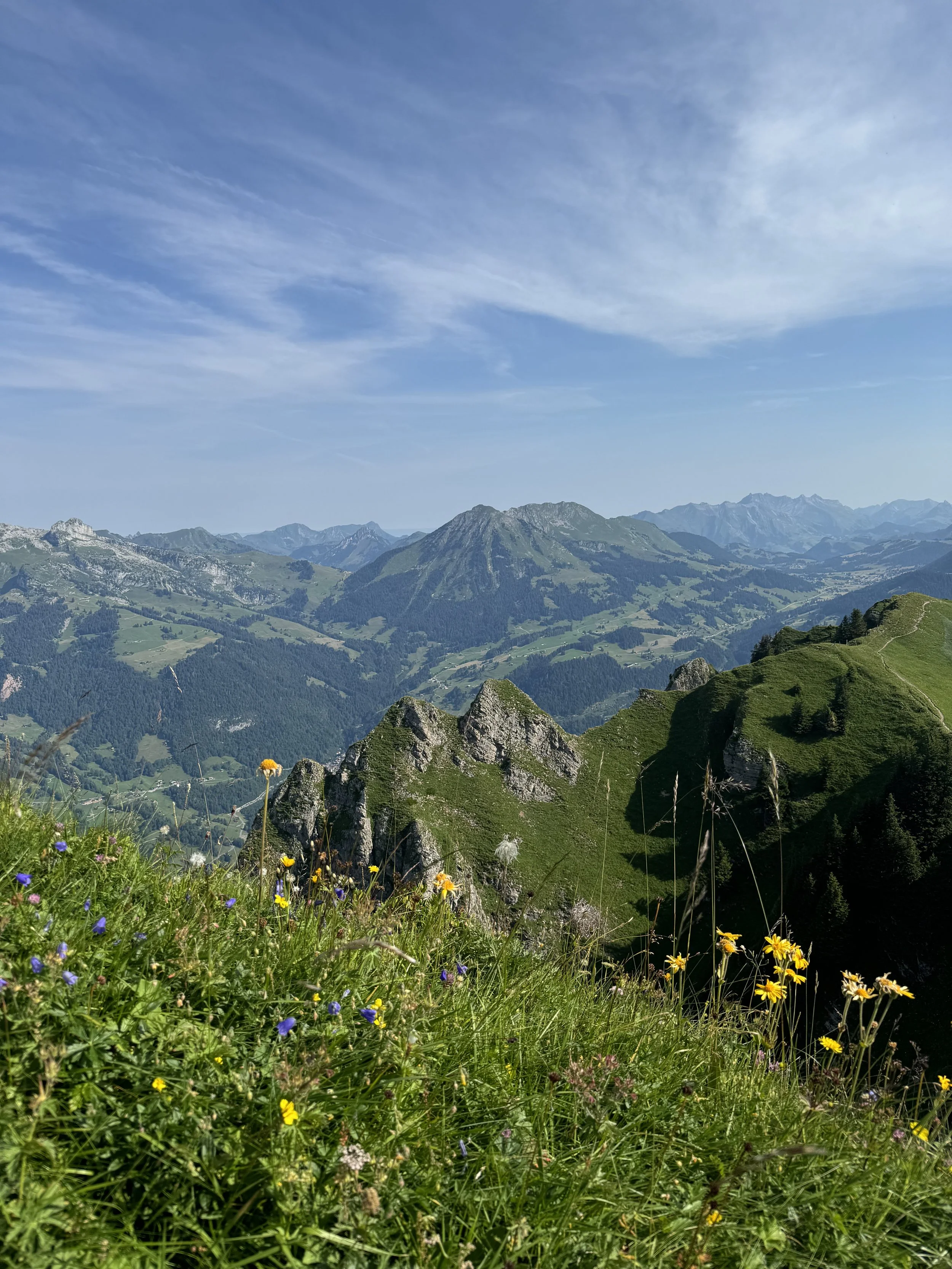 Taking the gondola and scenic mountain train up to Bretaye for picturesque hikes