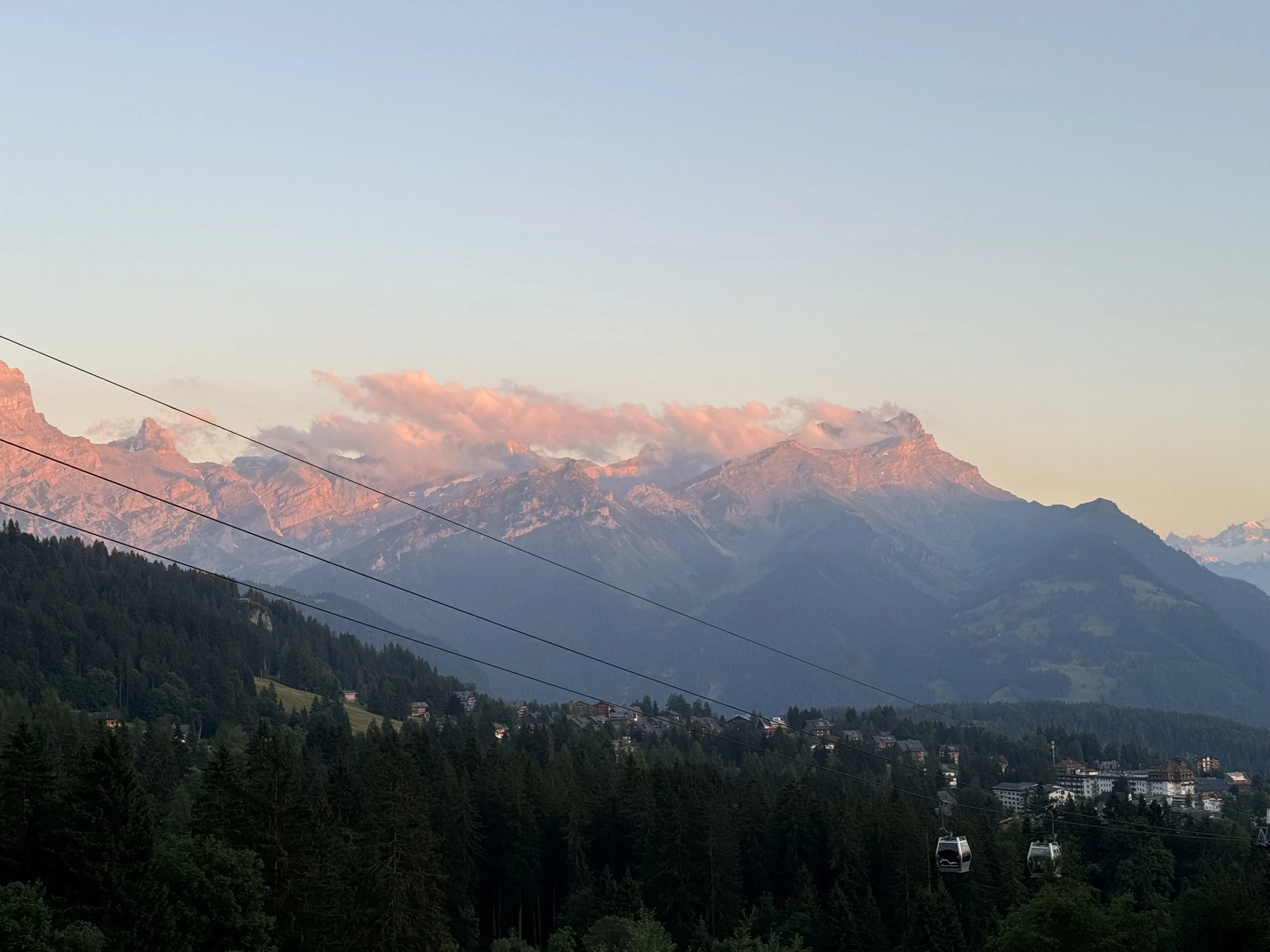 Villars-sur-Ollon, our serene and picturesque base in the stunning Vaud Alps, is truly a hidden gem of a mountain ski resort town situated conveniently just 45 minutes from the captivating region of Montreux and the sparkling shores of Lake Geneva. We dedicated the remaining days of our week to fully immerse ourselves in the breathtaking outdoor hiking areas, eagerly exploring the nearby attractions, and delighting in the numerous offerings for families that this charming small town has to offer. We rented a quaint chalet apartment through Interhome which offered spectacular mountain views, especially at sunset.